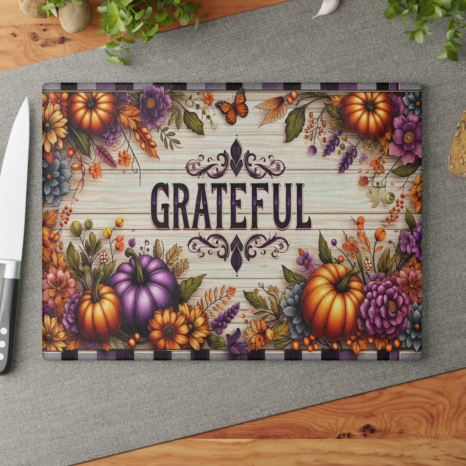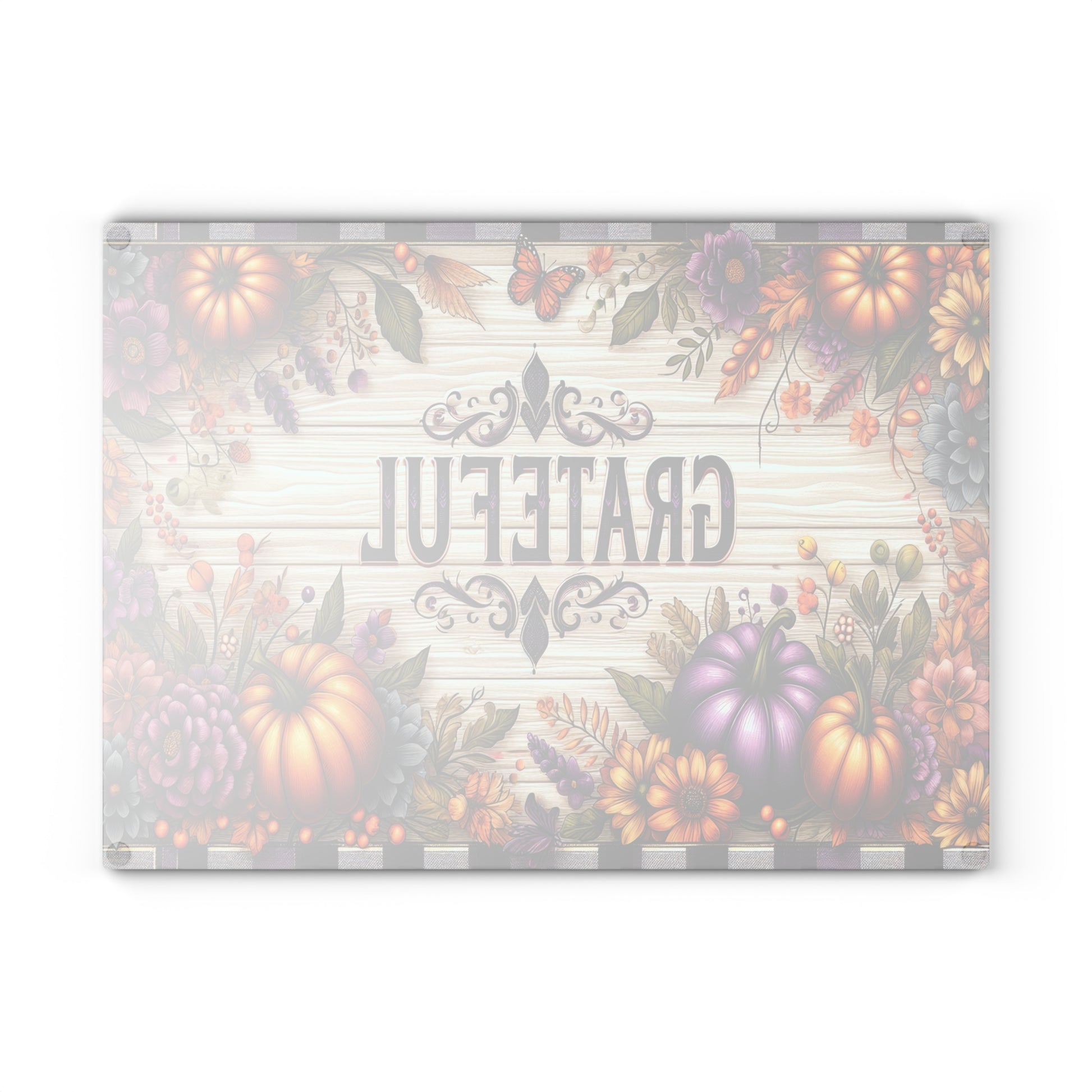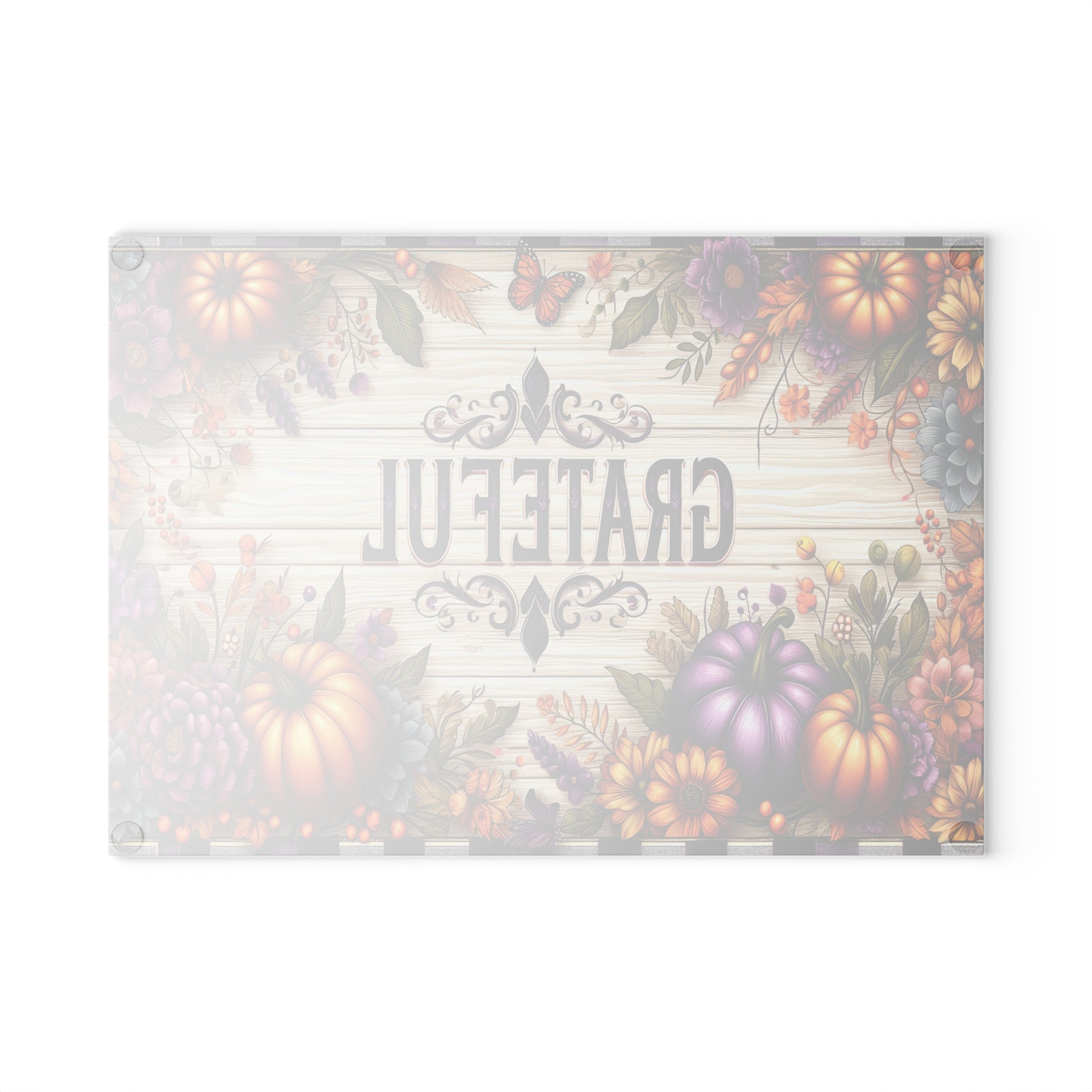 Elevate your kitchen space with this stunning Glass Cutting Board. Designed to inspire gratitude and warmth, it features vibrant colors and intricate decorations that make food preparation feel special. Perfect for both everyday cooking and festive gatherings, this board brings a cheerful atmosphere to your culinary adventures. Ideal for home chefs, baking enthusiasts, or those seeking a unique gift for housewarmings, holidays, or Thanksgiving gatherings. Its stylish design also makes it an excellent conversation starter at parties; evoke smiles and gratitude while you chop and prepare your favorite dishes!