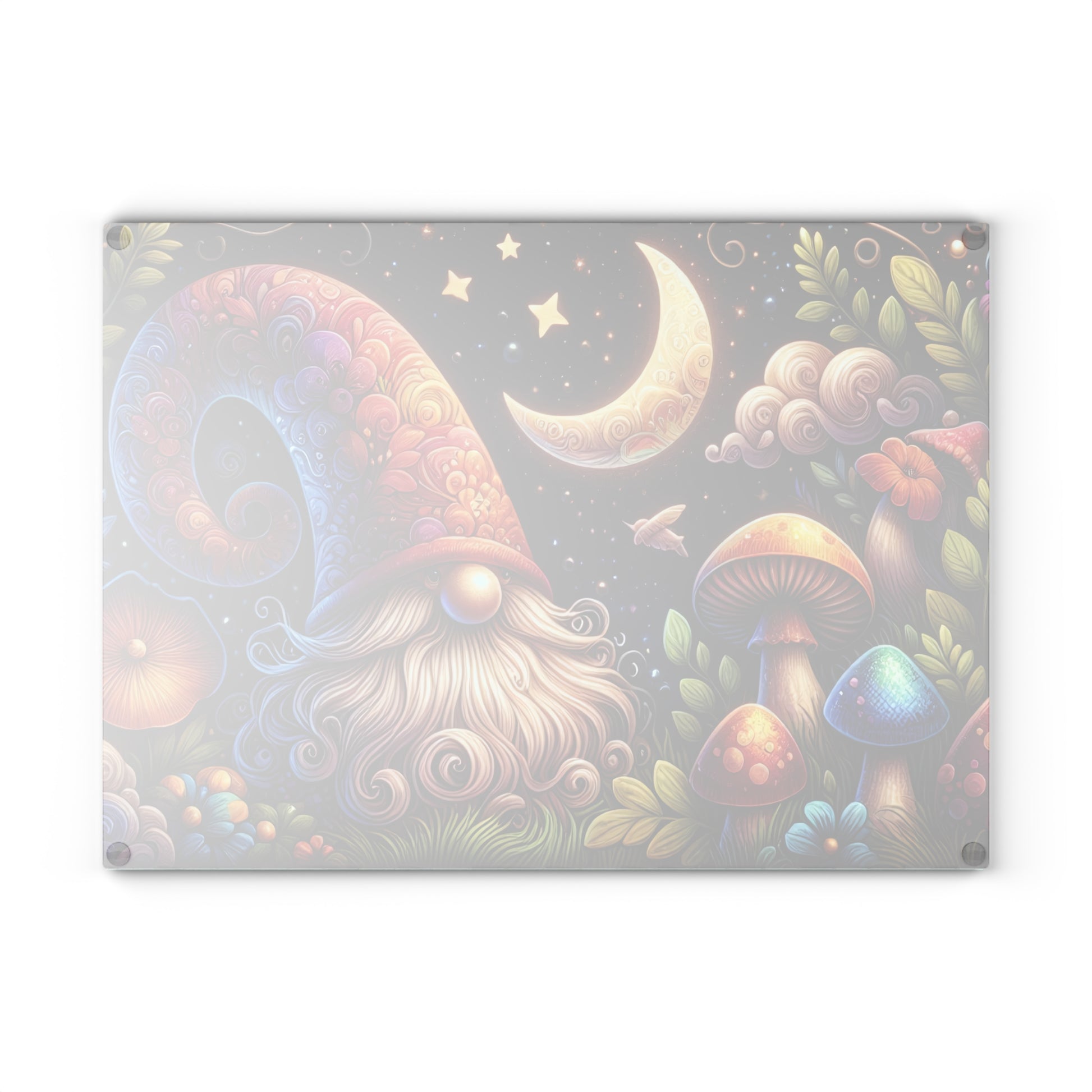 Whimsical Gnome Glass Cutting Board - Colorful Kitchen Decor